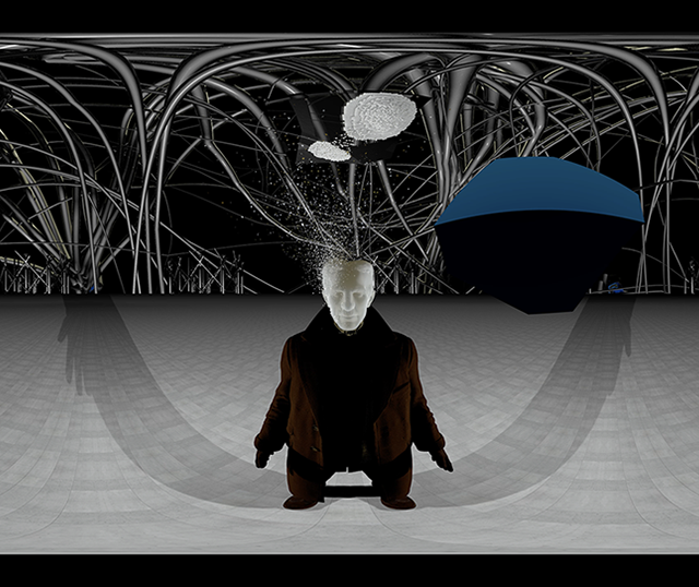 Slippages and repetitions weave between real and virtual elements – sculptural and architectural forms recur, rendered and recombined physically and digitally, calling into question distinctions between materiality and dream states and their interchangeable possibilities.