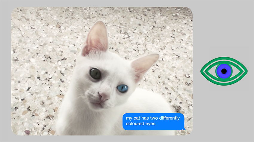 In the morass of general political/social ideas about the world and its current state, each one of us has to navigate this excess of divergent information with our fleshy ageing bodies and our own specific and local perceptions. How do we conceive of a “race” or of a “nation”? These are categories that can not be easily accounted for except in generalisations that do not fit the detail. Consciousness itself is what underpins any semantic human thought and through this ‘content’ of heterochromia (tetragramatic chimerism) my intention was to investigate what technologies (specifically the iphone here) do to our consciousness. This fracturing and speed of thought encountered with the iphone is potentially closer to how the mind works – scoping and moving through a huge diversity of fact/fiction, embodiment, disembodiment and affect, seeking coherence that is perhaps in reality not out there.